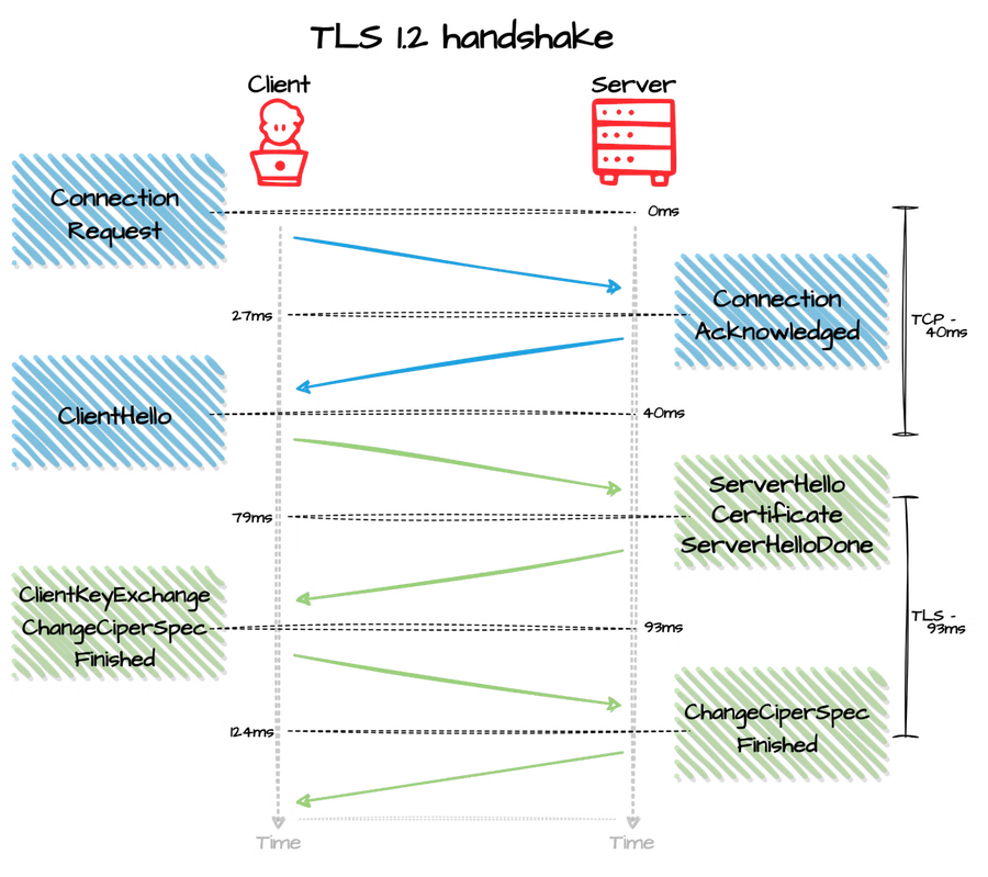 A key part of TLS is the TLS handshake, which involves the process of validating the identity and security of two ‘parties’ (servers) communicating across the internet.