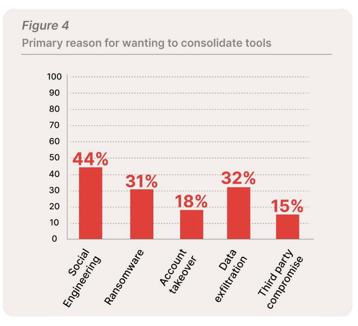 Multiple security threats converge into an intricate environment, which complicates the situation further. The threat of account takeover identified by 18% of respondents originates from phishing attacks. Data exfiltration (a worry for 32% of those asked) is a common outcome of ransomware compromise.